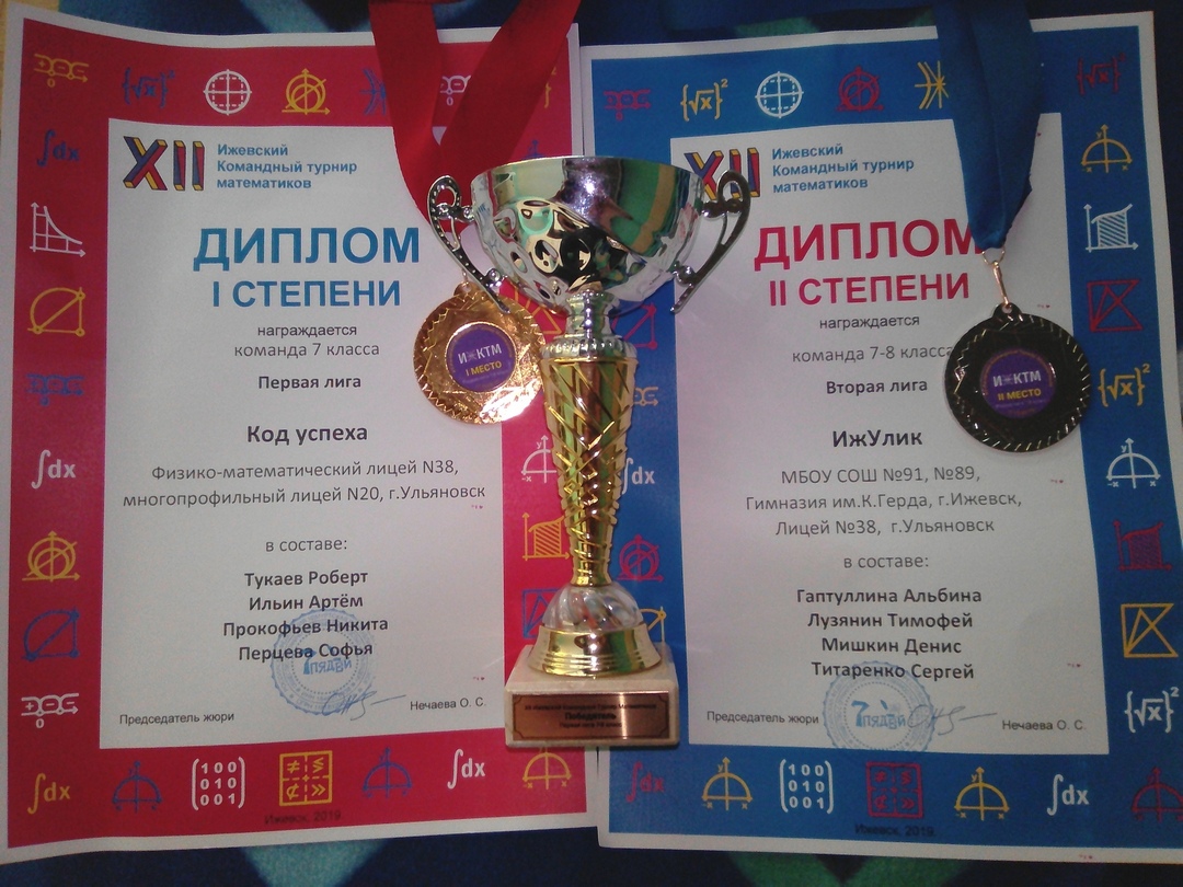 - Ильин Артём, Математика, Окружной уровень, Олимпиада, Перцева Софья, Победитель, Призёр, Прокофьев Никита, Титаренко Сергей, Тукаев Роберт