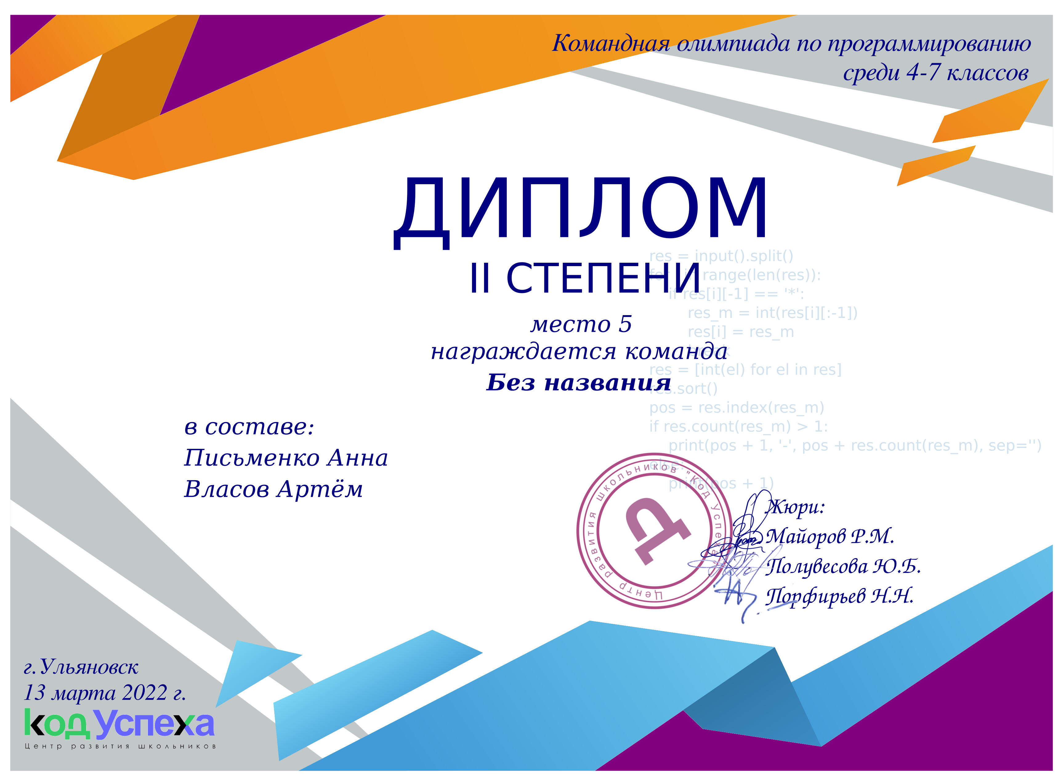 Письменко Анна Власов Артем
